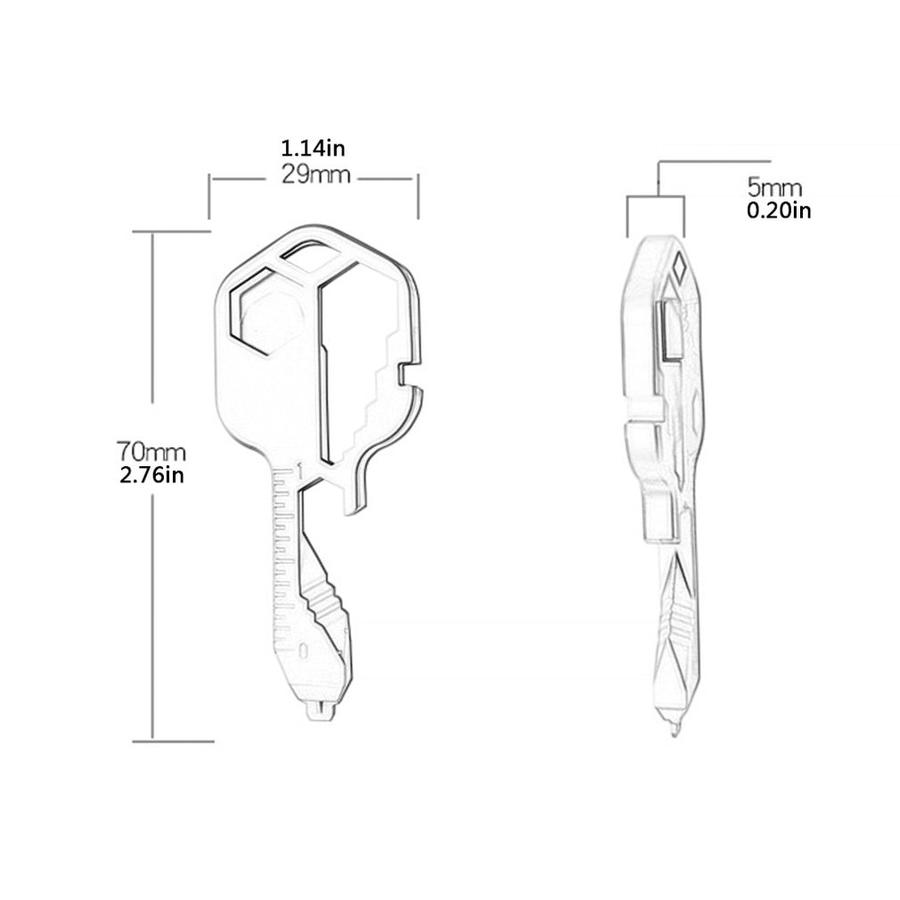 24-ühes võtmekujuline taskutööriist mitmeotstarbeliseks funktsionaalsuseks omab järgmisi tootefunktsioone: