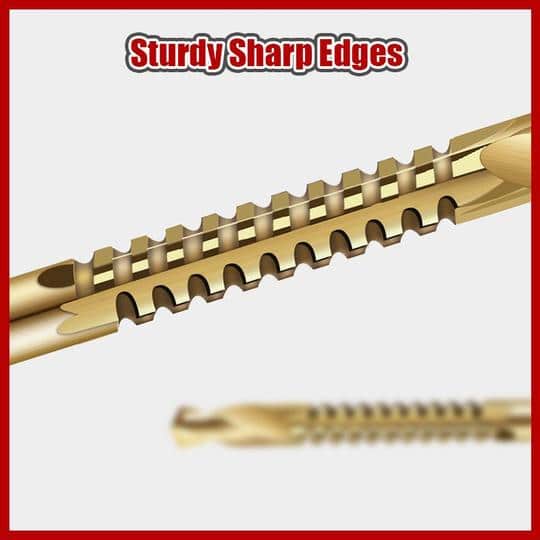 - Kasutatud on titaankattega HSS-kiirterasest materjali, puuriterade korpuse serv on terav, kiiremini ja väiksema vaevaga.