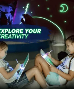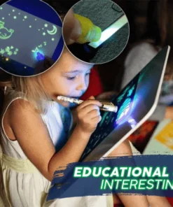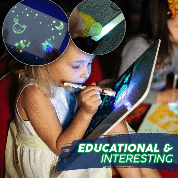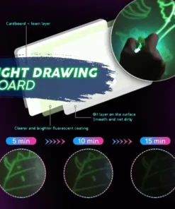 - Lülita sisse kaasasolevad LED-helendavad pliiatsid ja alusta tahvli pinnale joonistamist või kirjutamist.