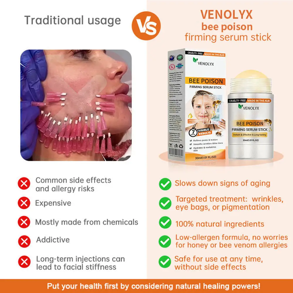 Nahaarstide poolt kliiniliselt testitud VENOLYX® mesilasmürk – pinguldav seerumipulk võib 7 päeva jooksul märgatavalt parandada kortse ja naha lõtvust.